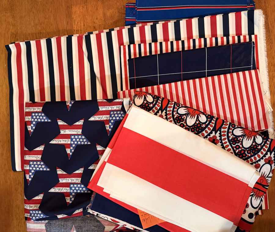 Red, White and Blue 2 (8 different fabrics including 5 yard piece) Multiple pieces of fabric. No guarantees for sizes (all sizes are estimates)
