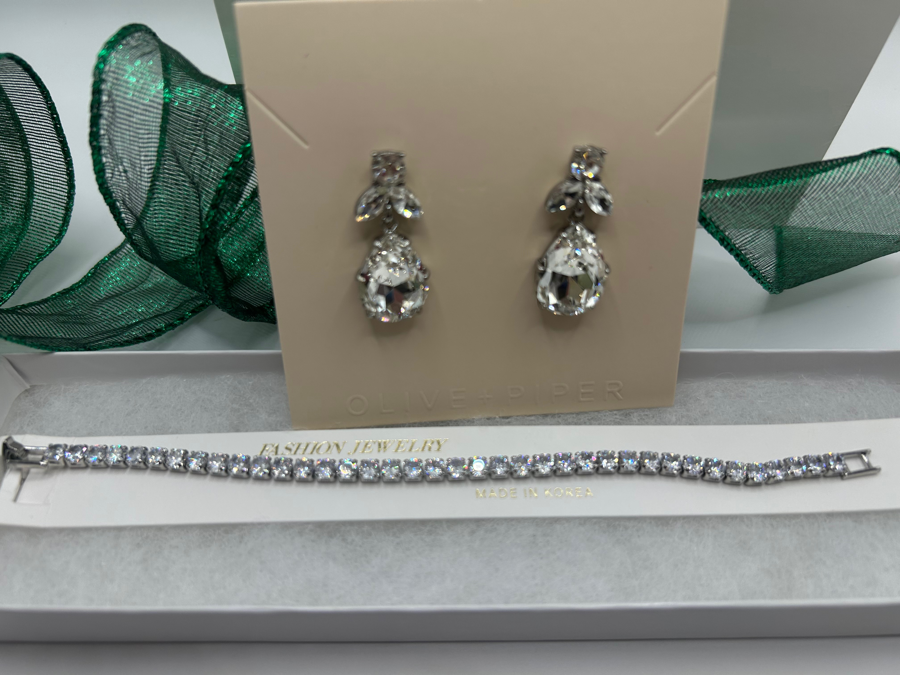 Add elegance and sparkle to any outfit with this stylish matching set. Includes: • Statement Earrings – Bold design from Olive & Piper • Tennis Bracelet – Classic silver style A versatile and timeless set, perfect for gifting or adding a touch of sophistication to your own collection.