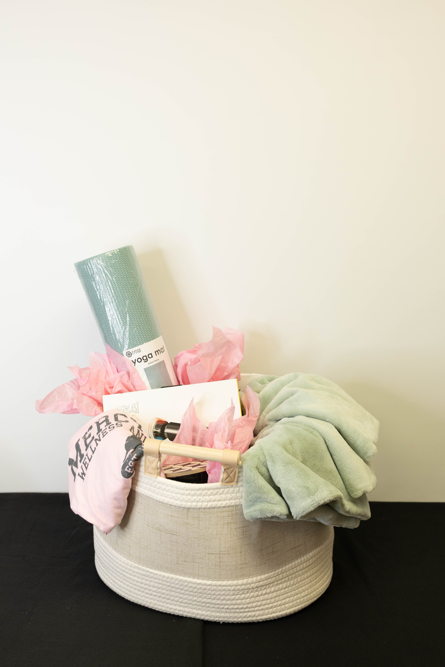 Unwind, recharge, and pamper yourself with this luxurious self-care collection designed for comfort, fitness, and relaxation. Includes: • Cozy Comfort: Luxurious faux fur throw (50" x 70") and candle • Fitness & Recovery: 6MM yoga mat, Everlast portable hot-cold massage gun • Apparel: Pink MercyOne T-shirt (XL) • Basket Included – Perfect for gifting or display A thoughtful bundle for anyone looking to relax, recover, and rejuvenate.