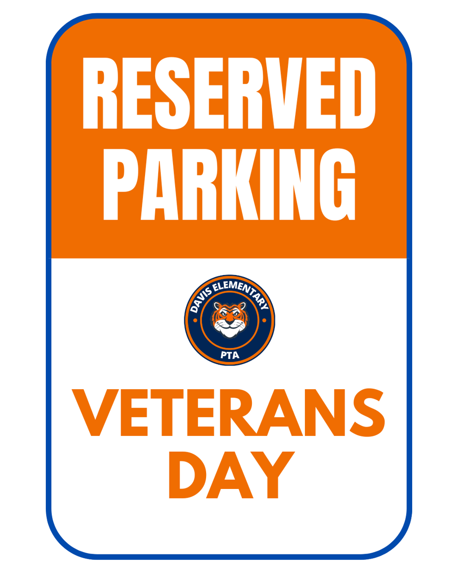 This item entitles the winner to the PTA reserved parking space for the Veterans Day Celebration. (2026-27 School Year)