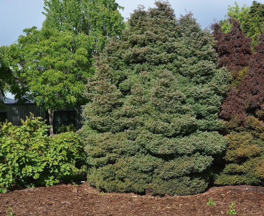 Chamaecyparis thyoides, known by a number of common names including white cypress, Atlantic cedar or swamp cedar, is a columnar evergreen conifer with a steeple-like crown that typically grows with a straight trunk to 30-50' (less frequently to 90') tall. It is native to freshwater swamps, bogs and wet woods along the Atlantic coast from Maine to Florida and along the Gulf coast from Florida to Mississippi. It is the State Tree of New Jersey where it may be seen growing in large pure colonies.