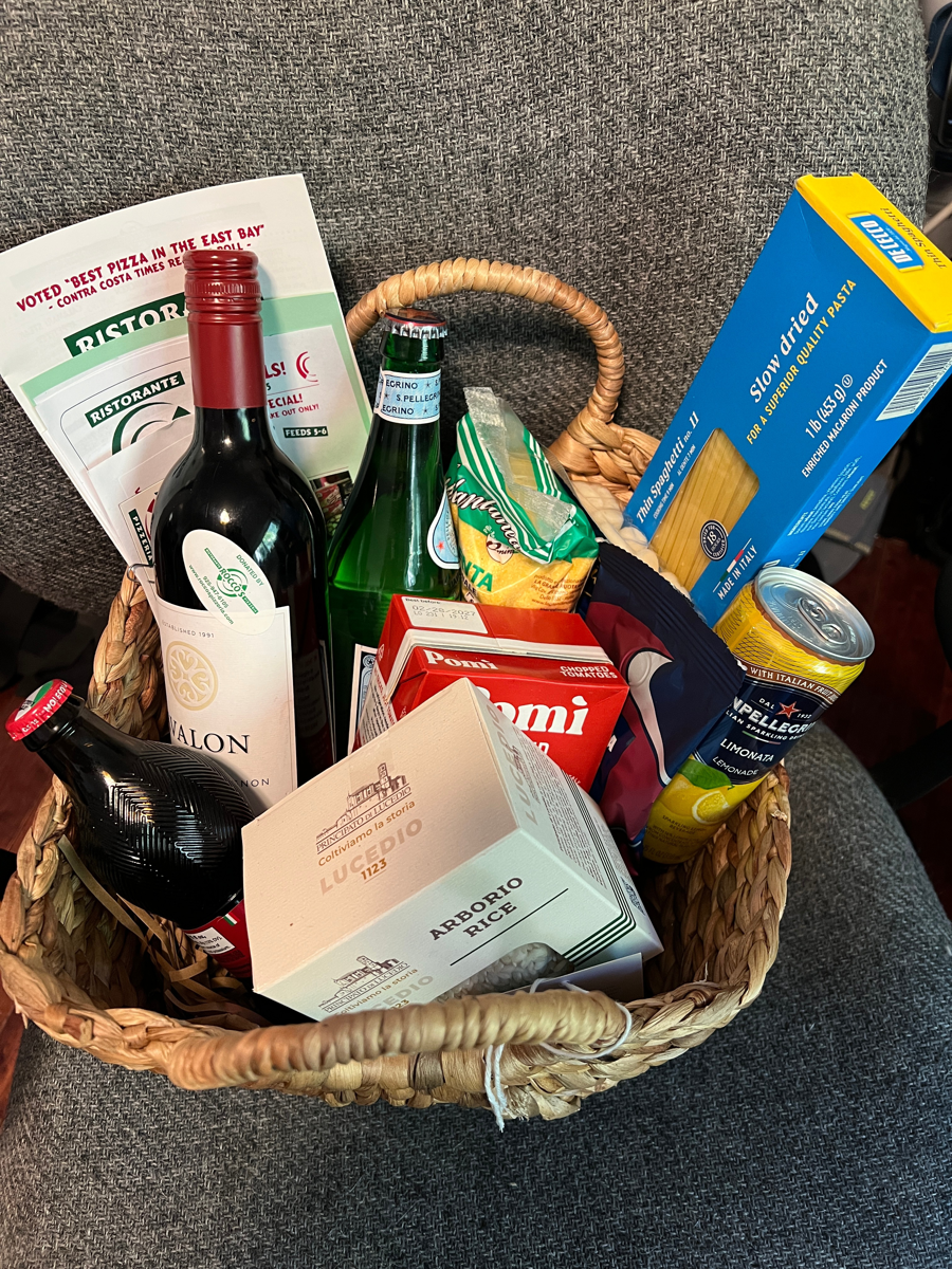 Rocco's Ristorante Pizzeria 2909 Ygnacio Valley Rd Walnut Creek, CA 94598 (925) 947-6105 rocco.biale@yahoo.com 95 YEARS OF BIALE FOOD HISTORY...and counting! For almost a century the Biale Family has been in the food, spirit and hospitality business in the San Francisco Bay Area. After arriving from Italy, my grandparents, Giovanni and Virginia Biale opened Biale's Meat Market in 1920 on Connecticut Street in the Italian neighborhood of San Francisco's Potrero Hill District. In fact, to this day, BIALE is still the entry way in front of the old butcher shop. Their three sons, Giacomo (Jack), Mario (my father) and Rudy all worked at the family butcher shop. Jack stayed in the butcher business his entire life. Mario and Rudy went on to open many restaurants, bars and clubs in San Francisco as well as Hawaii. Not to be forgotten in our family's food history is my wife Jacque Biale (nee Comelo) and niece Connie Biale who owned and operated the very popular Maria Elena's Mexican Restaurant in Concord for almost twenty years. Our family opened Rocco's Ristorante & Pizzeria here in Walnut Creek in 1999, and in keeping with family tradition, all three of our grown children now work here at Rocco's. Dante, our oldest, is usually behind the bar or at the front desk. Dominic can be found in the kitchen, working the pasta station with great pride and Nina, our youngest, is busy in the dining room serving your favorite dishes. We here at Rocco's take great pride in being a true, family owned and operated restaurant. A tradition that is sadly leaving our cultural landscape. Our entire family & staff hope you enjoy your visit to Rocco's as we try to keep a 95-year tradition going... ARRIVEDERCI A PRESTO DA ROCCO! "Fredo, you're my older brother and I love you, but don't ever take sides with anyone against the family again. Ever." –Michael Corleone, THE GODFATHER Included in the basket: $50.00 gift card DeCecco thin spaghetti Emilia potato gnocchi LavAzza Gran Riserva dark roast ground coffee 2.5 oz. San Pellegrino lemonade 11.15 fl oz. Istantanea polenta S. Pellegrino sparkling natural mineral water 16.9 fl oz. Avalon 2023 Cabernet Sauvignon 750 ml MoleCola classic cola 11.15 fl oz. Lucedio arborio rice Pomi chopped tomatoes 26.46 oz.