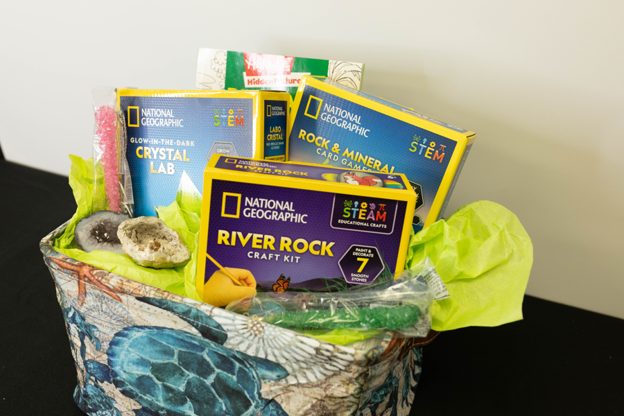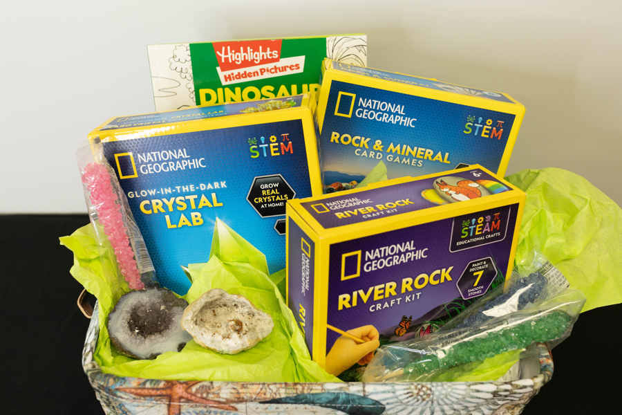 Explore the wonders of science and geology with this fun, hands-on educational bundle for kids! Includes: • National Geographic Kits: River Rock Craft Kit, Crystal Lab, Rock & Mineral Card Games • Books & Puzzles: Book of Dinosaur Puzzles • Fun Treats & Specimens: Rock candy (3), geodes (2) • Storage & Transport: Turtle-themed tote A perfect bundle for curious minds, aspiring scientists, and young explorers!