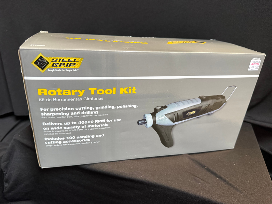 Rotary Tool KitItem Number: 315Category: Baskets and PackagesRetail Value: USD $46.00 Bidding Starts at: USD $10.00 0 Bids Pre-Bid Enter USD $10.00 or more Minimum Bid Increment: USD $2Time Left 2 Days : 18 Hours : 59 Minutes : 02 SecondsEnds: Mon, Jan 01, 0001 12:00 AMDescription Specifics in pictures