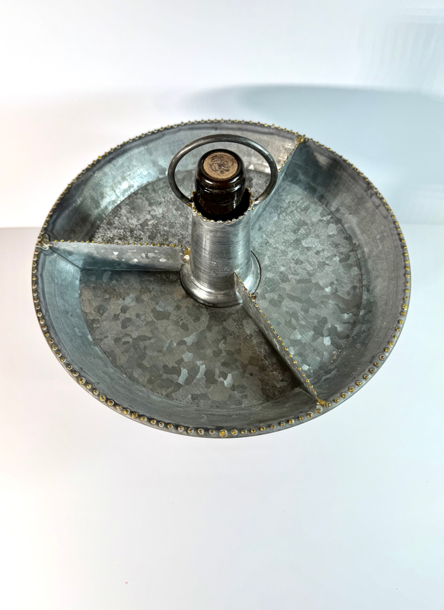 Round Divided Serving Tray 10" Galvanized Zinc Fits Over Wine Bottle for Serving - wine included as a bonus.