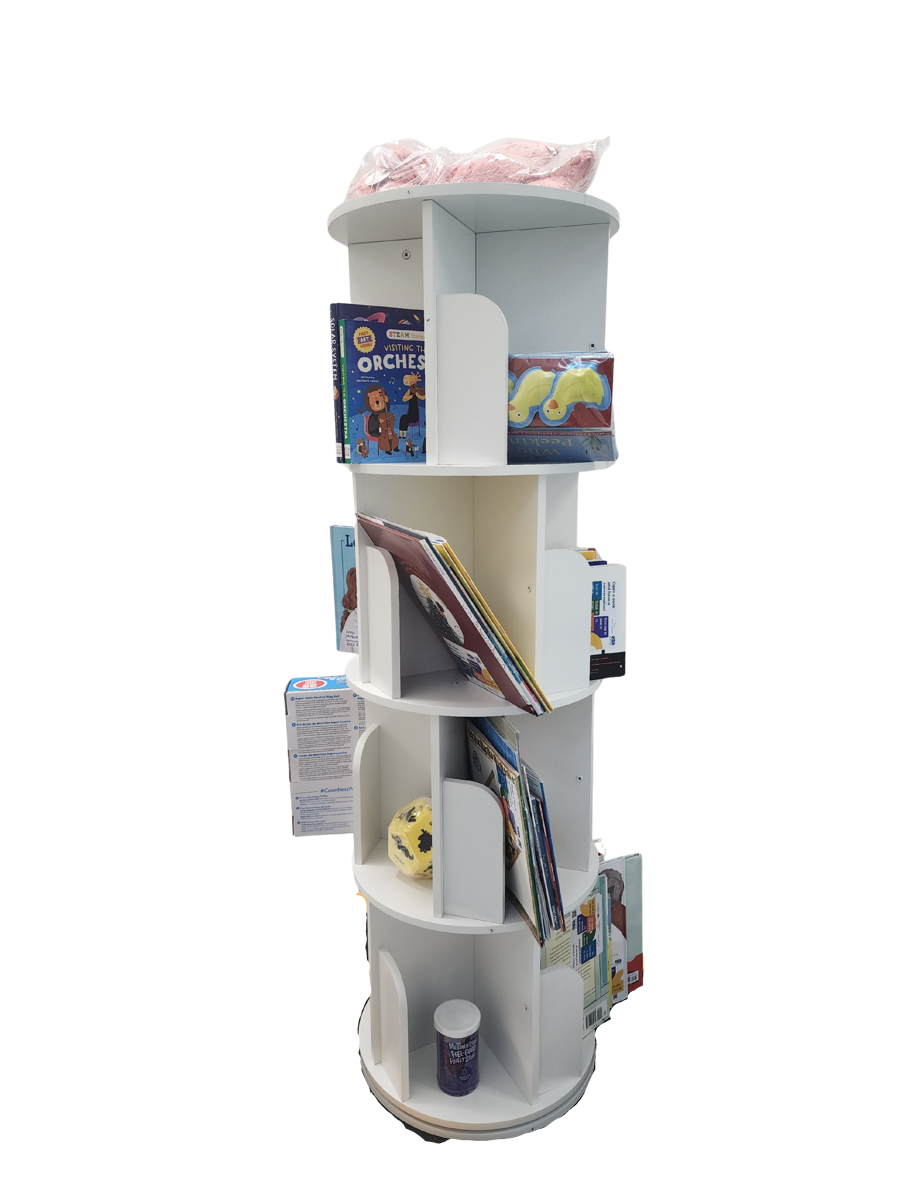Add charm and function to a child’s space with this delightful circular rotating bookcase, perfectly designed for a children’s library. Its smooth spinning design makes it easy for little readers to explore their favorite stories, keeping books organized, accessible, and fun to discover.