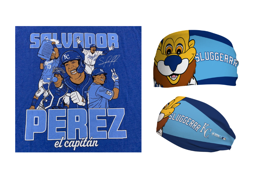 This exclusive package features an XL Charlie Hustle T-Shirt featuring Salvador Perez and an Authetic MLB Cooling Headband.