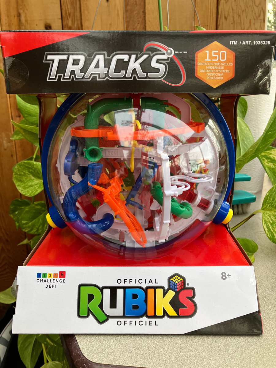 Addictive!! Family fun with this Rubik's Tracks Puzzle -- can you get the ball to roll all the way around the many tracks? Easy to pick up, impossible to put down. Still in box.