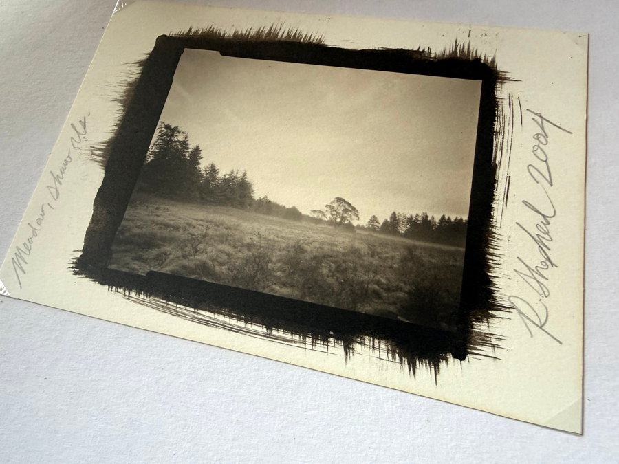 This moody saltprint, a primitive type of photograph, depicts a field on Shaw Island, possibly the very field frequently visited by CIFC campers. The print measures 11" by 14" and is signed R. Shepard 2004.