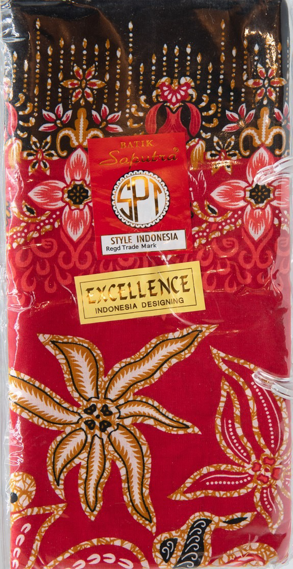 New red Saputra batik saari, excellence in indonesian designing and materials