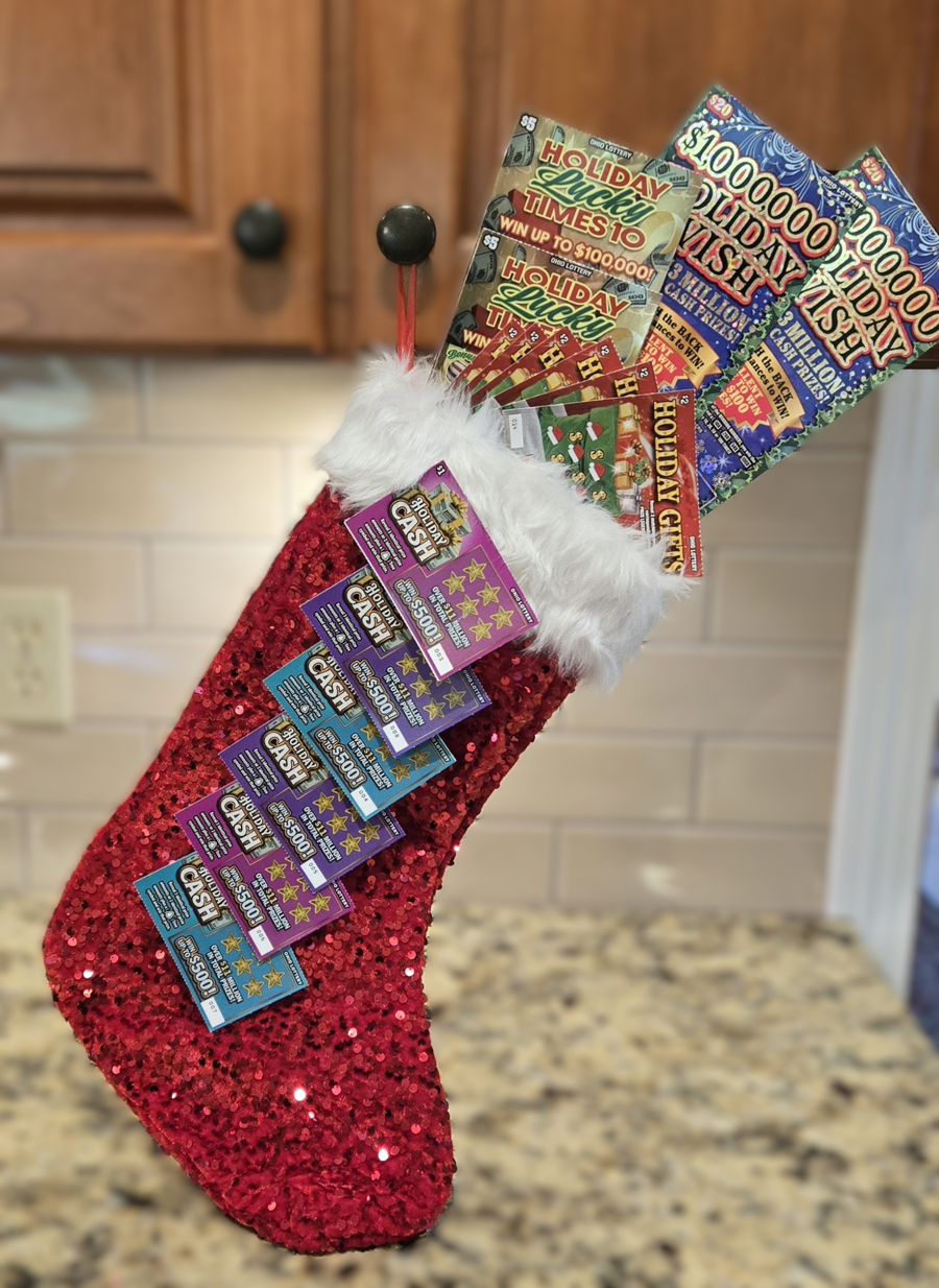 Get ready to spread some holiday cheer with our exclusive bundle of scratch off lottery tickets! This festive package features $68 worth of exciting scratch off tickets, perfect for gift giving. Each ticket is nestled inside a sparkly stocking, making it an ideal present for friends, family, or even as a fun addition to your own holiday celebrations. Don't miss the chance to give the gift of luck and excitement this season with our scratch off lottery tickets bundled for gift giving!