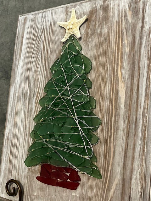 Sea Glass Light-Up Christmas Tree Plaque with Stand
