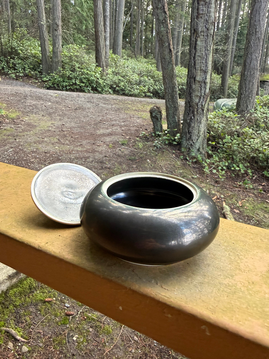 Treasure this handmade, one-of-a-kind lidded vessel adored with a harbor seal made by directors Ben and Margaret. It measures 4.5" wide by 4" tall and can hold your seaglass collection from Canoe Island, your spare euros until you return to France, or your jewelry.