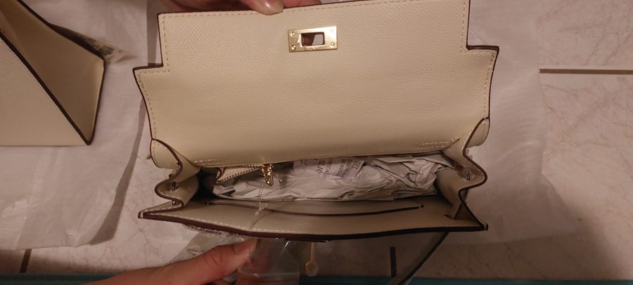 Beautiful, cream-coloured handbag with metallic gold clasp and pearl detail. It will accentuate any outfit for a day or evening out!