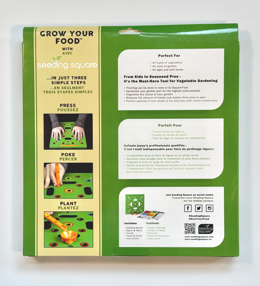 Use this clever tool to maximize the yield of your garden plot. Just place the square on the soil and follow the simple directions. Easy enough for all levels of gardening skills.