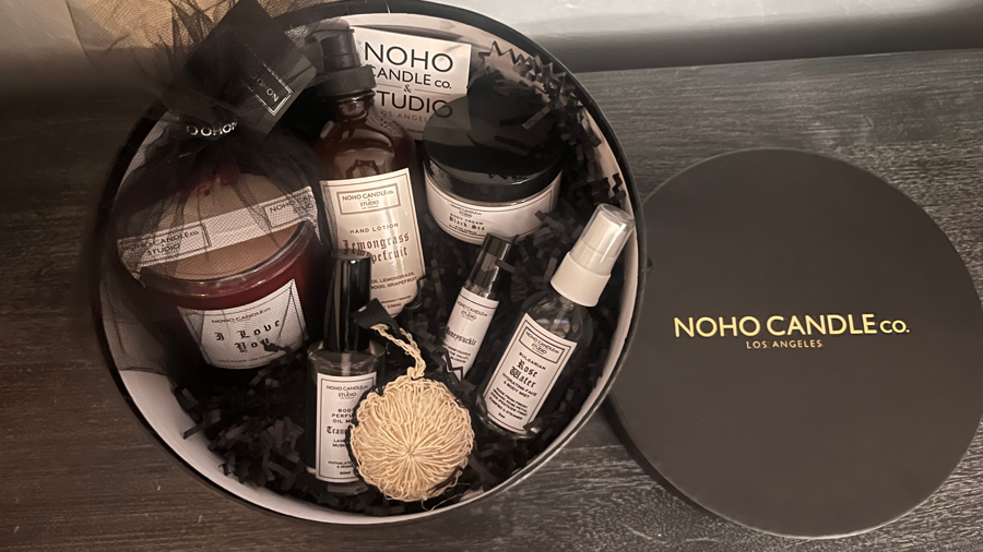 Treat Yo Self! This self care basket is made up of items from NoHo Candle Company. Handmade, Vegan and Sustainable. Black Sea candle, Black Sea Body Cream, Body perfume Oil Mist Bulgarian Rose Water Hydrating Face & Body Mist, Organic Rose Petal Juice, Honeysuckle Perfume Oil, Lemongrass Grapefruit Hand Lotion and mini Loofah.