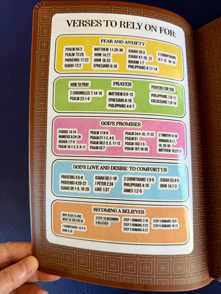 The Word: A beautifully embossed leather-bound Bible with indexed tabs for easy study.