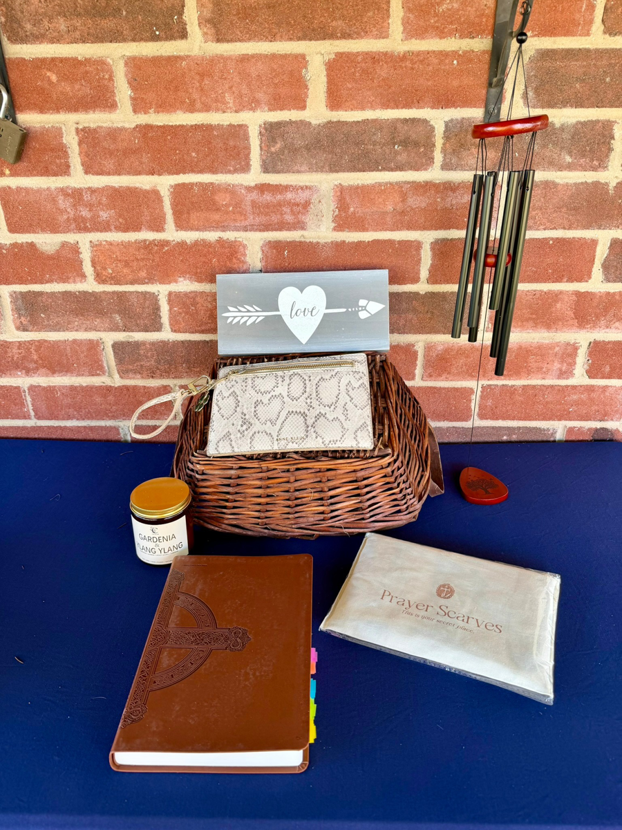 Prayer Essentials: A premium Prayer Scarf ("Your Secret Place") for focused meditation and a hand-poured Gardenia & Ylang Ylang candle.