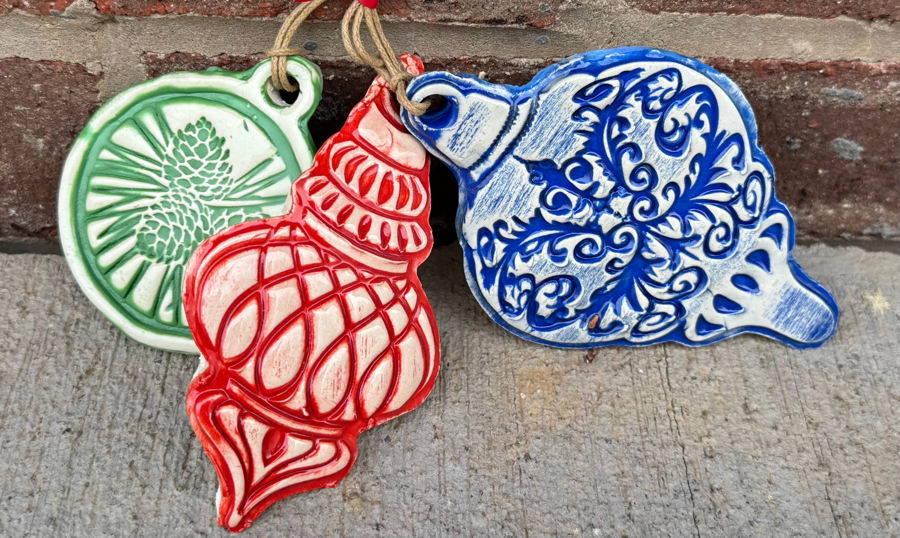 Set of 3 Clay Ornaments