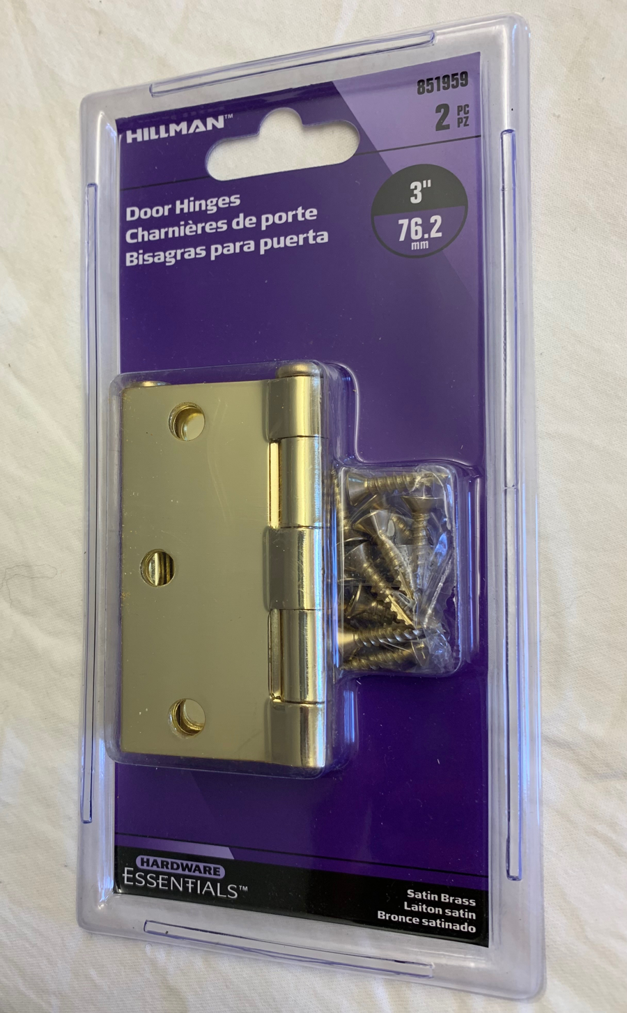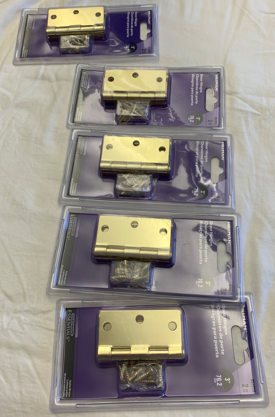 Matching set of 5 brass 3-inch door hinges, 2 pieces to each set.