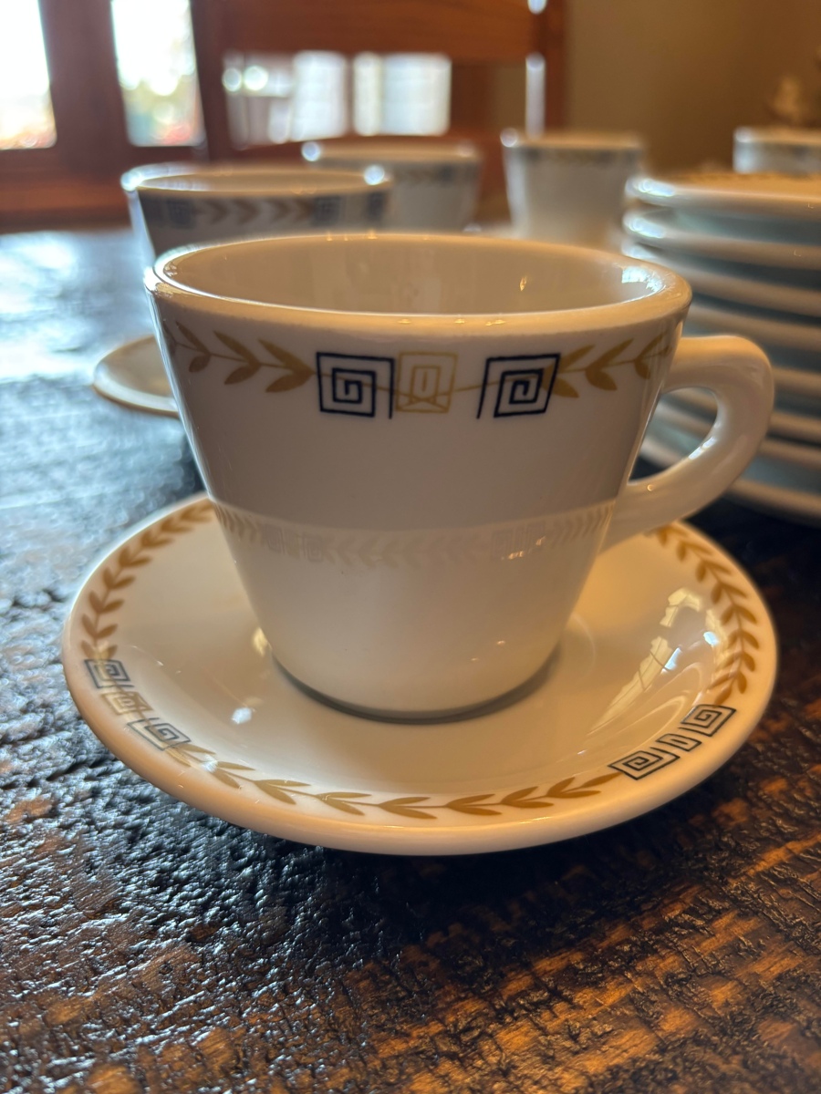 This exquisite set of 8 Vintage St. Augustine Catholic Church Dinnerware is a beautiful addition to any collection. Designed for a service for eight, this charming set includes dinner plates, salad plates, dessert bowls, cups, and saucers, ensuring that every meal is served with elegance. Additionally, the collection features two serving platters, perfect for presenting your favorite dishes. These pieces have a unique history, having been used in the church basement for years before transitioning to paper products. Each item reflects the warmth and tradition of communal dining, making it not just dinnerware but a piece of cherished heritage. Whether for everyday use or special occasions, this vintage dinnerware set brings a touch of nostalgia and grace to your table.