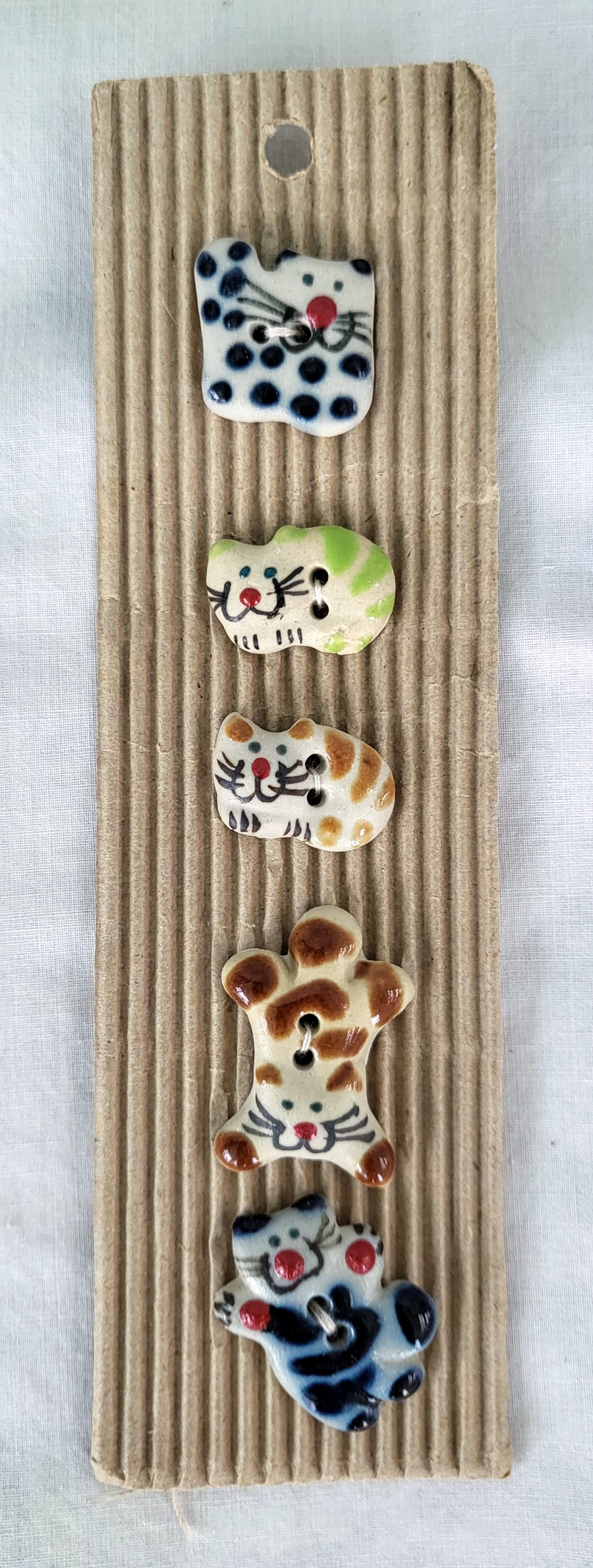 Set of Five Handcrafted Ceramic Cat Buttons