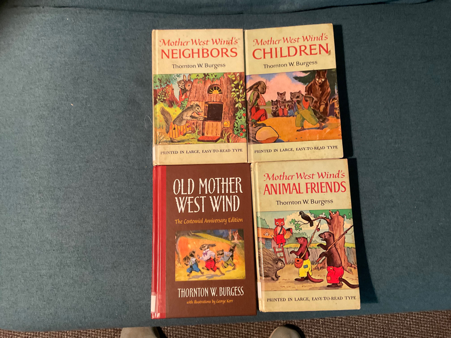 A 4 book set including “Old Mother West Wind”, “Mother West Wind’s Neighbors”, “Mother West Wind’s Animal Friends”, and “Mother West Wind’s Children”.
