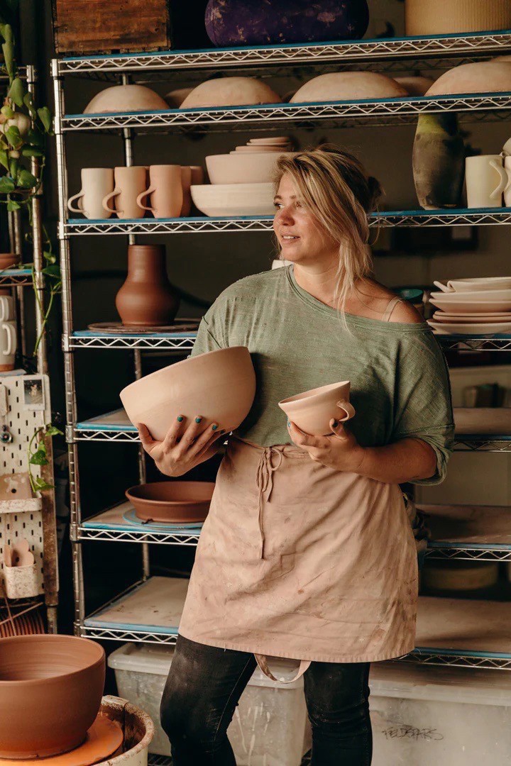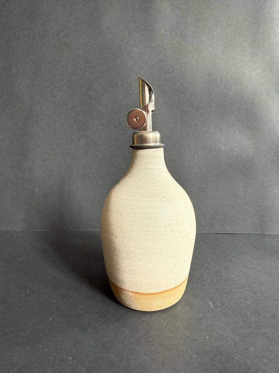 Ceramic Oil Bottle *The most handy tool in the tool box is by far the oil bottle. It looks lovely on the counter while serving its purpose! Made from Texas stoneware. *Approximately 5”H, 12-14 oz Settle Ceramics is owned by Samantha. Settle has been her labor of love for the past 6 years and now it has more to do with the way she lives than just about working with clay everyday. She believes in making objects that mean something, items that are meant to be cherished for years + generations.When you purchase a pot from Settle Ceramics, you are purchasing something that was made by hand from start to finish. It begins with weighing and wedging, then forming the piece on the potters wheel, to firing and hand glazing. All of the glazes offered are unique to Settle. Each one has been painstakingly tested and tweaked to achieve the color and surface desired. Settle Ceramics is located at 1023 Springdale Road, Building 6 Suite F *By Appointment only*