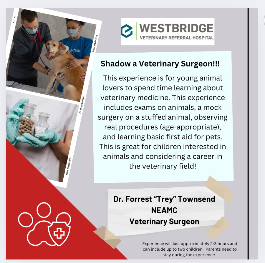 Shadow a vet surgeon for a day with Dr. Trey Townsend at Westbridge Animal Services!