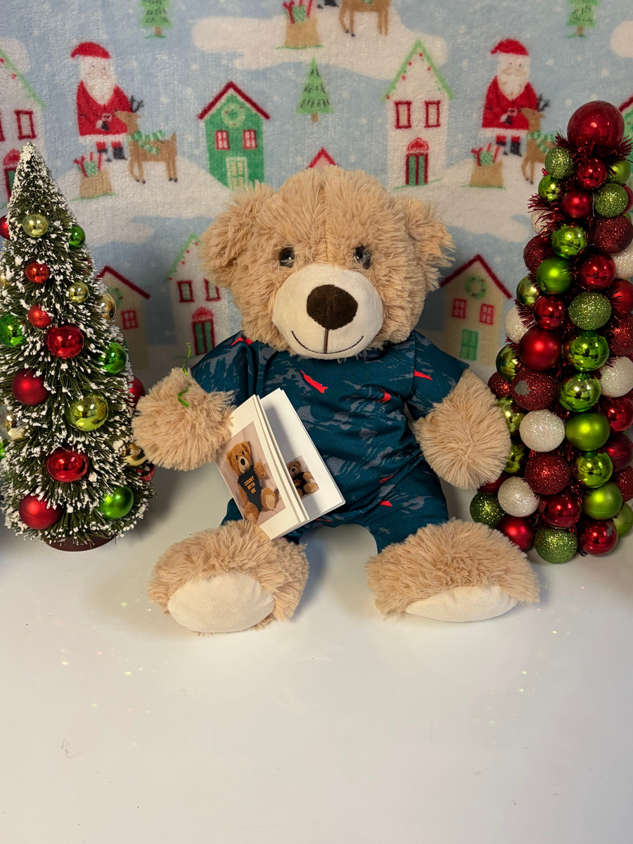 Shark Splash Silas is a handcrafted ocean adventurer dressed in a deep teal outfit sprinkled with bright red sharks swimming across the fabric. With his soft tan fur, curious eyes, and playful spirit, Silas brings a wave of fun, imagination, and big-hearted charm wherever he goes. He proudly carries his How to Count book, excited to help his new friend explore numbers with confidence, curiosity, and a splash of ocean-themed joy. Whether he’s diving into pretend underwater quests, sitting beneath the Christmas tree like a little holiday reef explorer, or offering warm snuggles at bedtime, Shark Splash Silas fills every home with laughter, adventure, and love. Handmade with care, swimming in personality — Silas is ready to meet his forever friend.