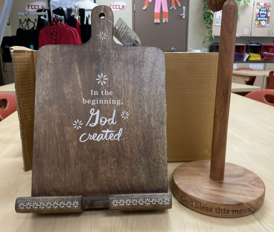 1 Wooden Cookbook Holder: "In the Beginning, God created.."