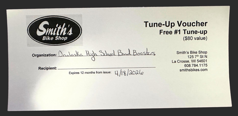 Get ready to shift into gear with this exclusive gift certificate for Smith's Cycle! Whether you're an avid cyclist or just starting out, this certificate allows you to enjoy a professional tune-up for your bike, ensuring it runs smoothly and performs at its best. Don't miss out on this fantastic opportunity to enhance your cycling experience with expert service at Smith's Cycle. Bid now and give your bike the care it deserves!