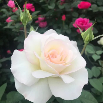 Hybrid Tea Shirley’s Bouquet™ is a timeless Hybrid Tea rose that radiates elegance in both the garden and the vase. Its pure white blooms, touched with the faintest blush at the edges, spiral open from graceful, pointed buds into large, classic flowers about 5 inches across. Each bloom carries a remarkably strong, sweet Old Rose fragrance—perfect for moonlit gardens, cutting bouquets, or adding a touch of sophistication to borders. Introduced in 2015 and named in honor of Shirley Staples, the face of Certified Roses for over 50 years, this rose combines beauty with dependable performance. The plant has an upright, bushy habit with dark green, semi-glossy foliage and excellent disease resistance. It blooms in repeat flushes throughout the season, thriving in full sun and offering low-maintenance charm. Shirley’s Bouquet™ is more than a rose—it’s a statement of grace and purity, illuminating gardens and floral arrangements with its classic form and powerful perfume.
