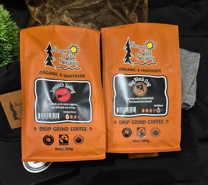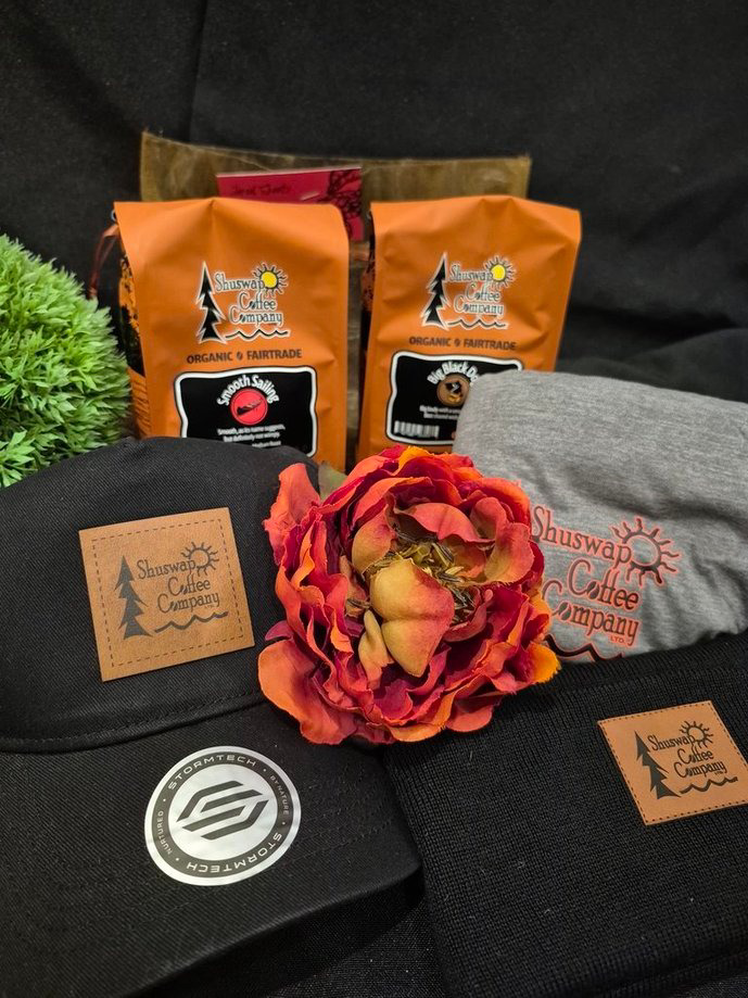 Brew up some Big Black Dog or Smooth Sailing, each in a 284 g bag, ground for your convenience. Also included in the gift pack is an (M) short-sleeve T-shirt, ball cap, and a toque. Shuswap Coffee Company is a destination for exceptional specialty coffee in the heart of Salmon Arm, British Columbia. We take pride in being Certified Organic and Licensed Fairtrade because we understand the significance of supporting organizations that ensure transparency from farmer to consumer.