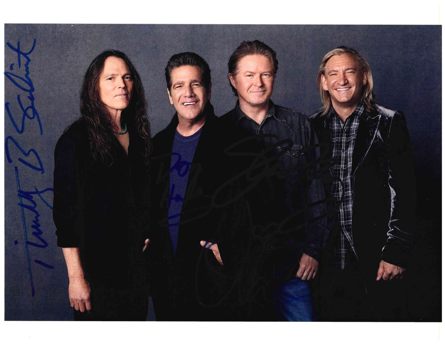 EAGLES band signed 8.5 x 11 photo. Certificate of authenticity included.