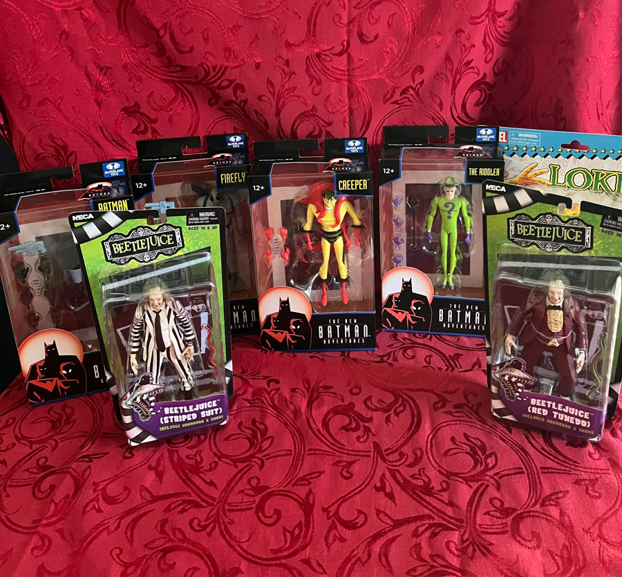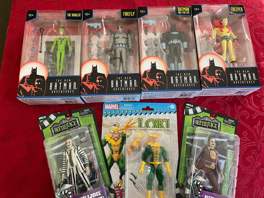 4 of the new Batman Adventures Action Figures, 2 Beetlejuice Action Figures, 1 Marvel Loki Action Figure.
