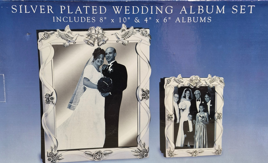 Silverstone Plated Wedding Album Set. Includes 8" x 10" and 4" x 6 " albums. Very nice set.
