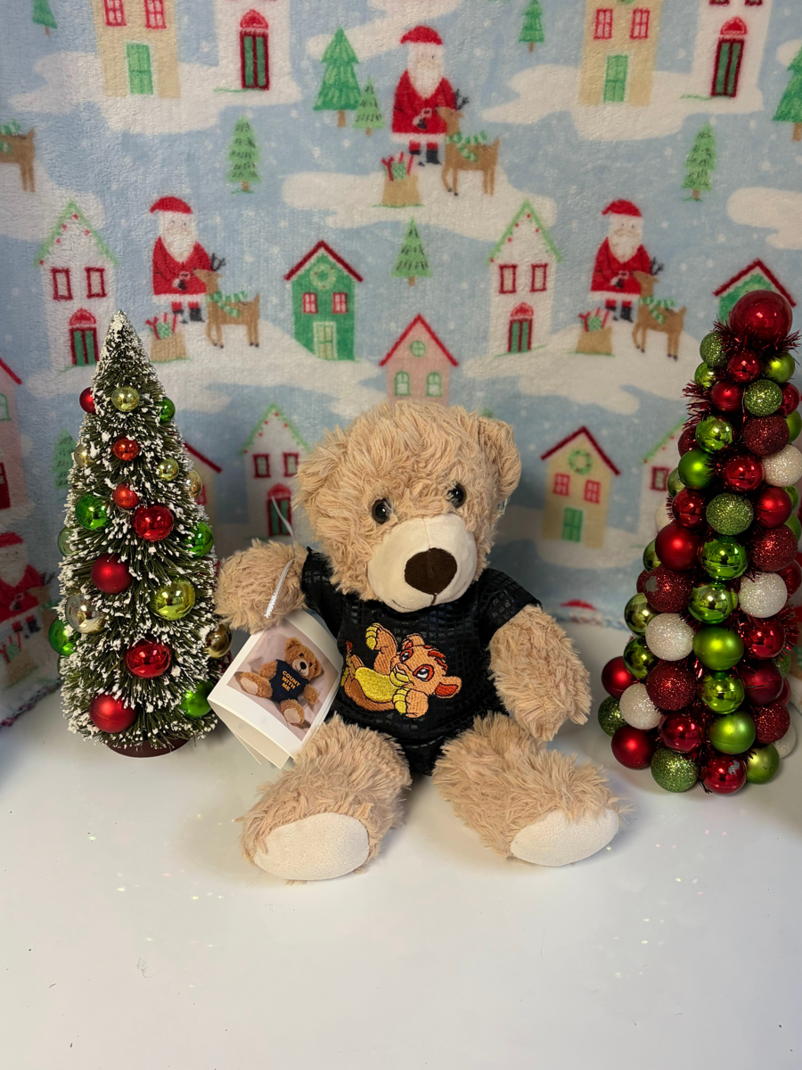 Simba Snuggle Sam is a lovingly handcrafted bear dressed in a cozy black outfit featuring an adorable embroidered Simba, ready to bring courage, comfort, and warm-hearted fun to his new home. With his soft tan fur, gentle eyes, and playful spirit, Sam is the perfect friend for little ones who love adventure, stories, and snuggles. Sam proudly carries his How to Count book, excited to help his new friend learn numbers with confidence and joy. Whether he’s joining a child for pretend jungle adventures, sitting beneath the Christmas tree, or offering comfort during bedtime, Simba Snuggle Sam brings bravery, imagination, and heart to every moment. Handmade with love, crafted for connection — Sam is ready to meet his forever friend.
