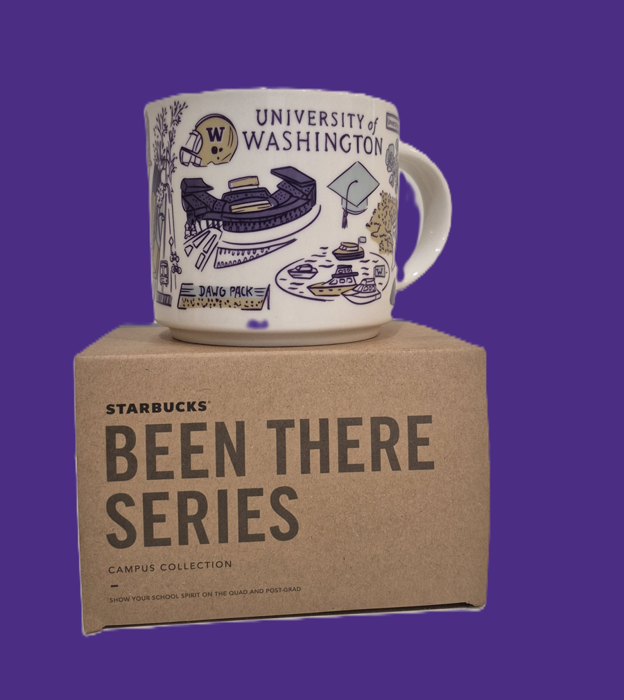 Show your Husky pride with this University of Washington “Been There” Campus Series coffee mug—a must‑have for UW alumni, fans, and Pacific Northwest locals alike. Part of Starbucks’ popular collectible series, this mug features detailed illustrations celebrating the University of Washington campus and its iconic spirit. Perfect for morning coffee, afternoon tea, or displaying as a keepsake, it brings a touch of Montlake charm to every sip. Whether you’re reminiscing about campus days, cheering on the Huskies, or simply love a meaningful, local design, this mug delivers both function and flair. It also makes a thoughtful gift for proud UW families, teachers, or supporters. Bid big, sip proudly, and support our school—Go Dawgs!