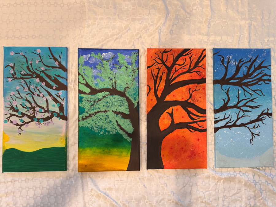 🎨 Four individual canvas panels forming one complete tree design based on the four seasons