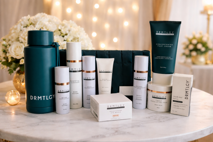 This incredible set is packed with fan-favorite essentials and must-have treatments, including a retinol complex 0.5%, essential cleanser, broad spectrum SPF 45, soothe + recovery cream, needle-less serum, universal tinted moisturizer, tingl exfoliating pads, brightening eye masks, and a concentrated foot cream. It also comes with a DRMTLGY water bottle and bag—perfect for keeping your skincare organized at home or on the go.