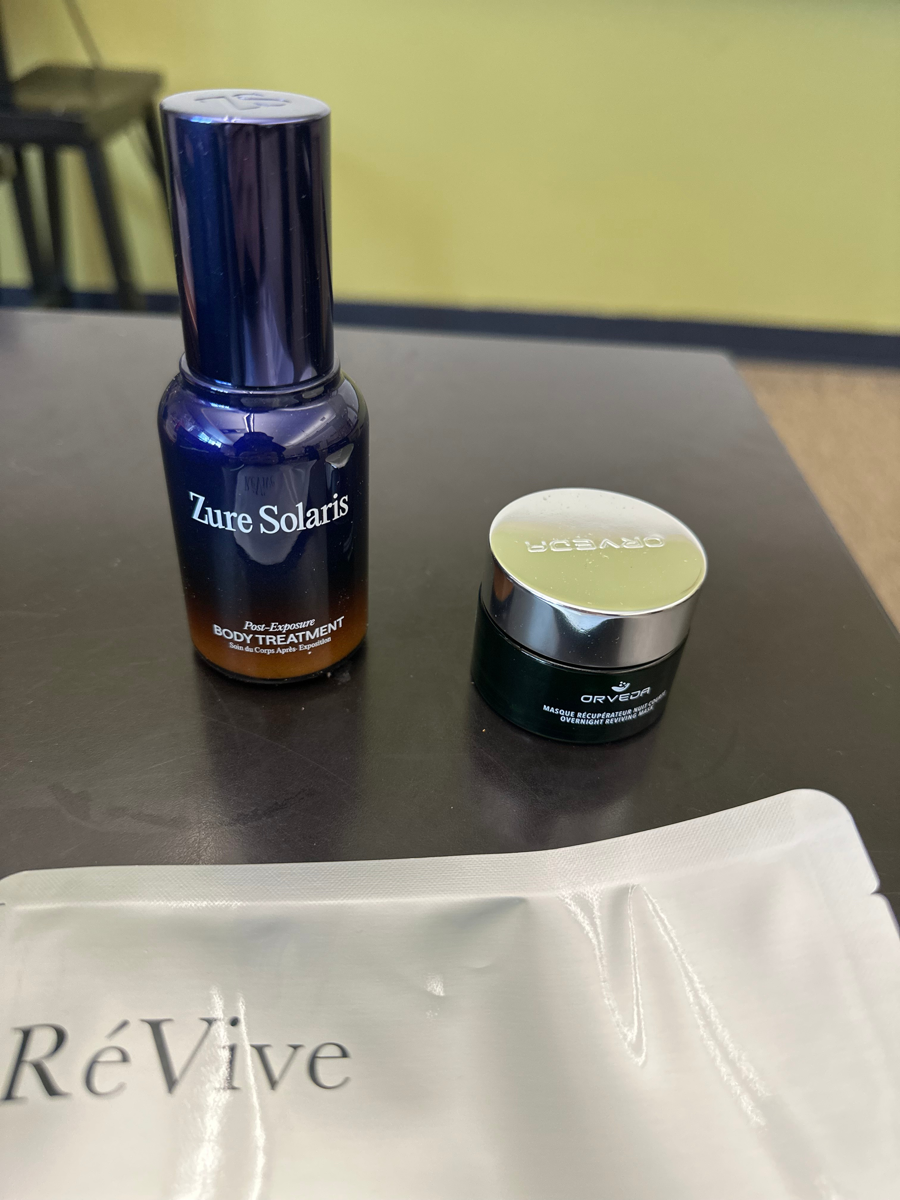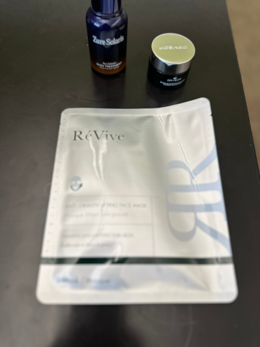 Enjoy this skincare package, complete with a ReVive anti-gravity lifting face mask, 15 ml Orveda overnight reviving mask, and Zure Solaris post-exposure body treatment. Treat your skin to the care it deserves.
