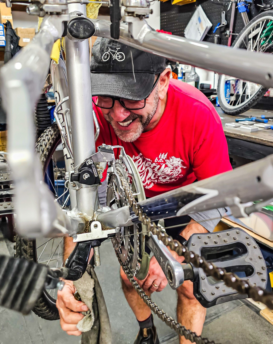 A rider's bike tune up by Sookum Bike & Ski. Technicians will check the drivetrain for wear, adjust shifting, minor wheel true, align brake calipers, check pads & rotors, safety bolt check & tighten, finishing with a test ride. At Skookum Bike & Ski, we have what you need to get out there and have your best day playing in the hills, whether you’re rolling or sliding! Bikes, skis, gear, clothing and accessories: chances are, we have what you’re looking for. Not only do we stock great gear, we repair all types of bikes, and completely tune up skis and boards.