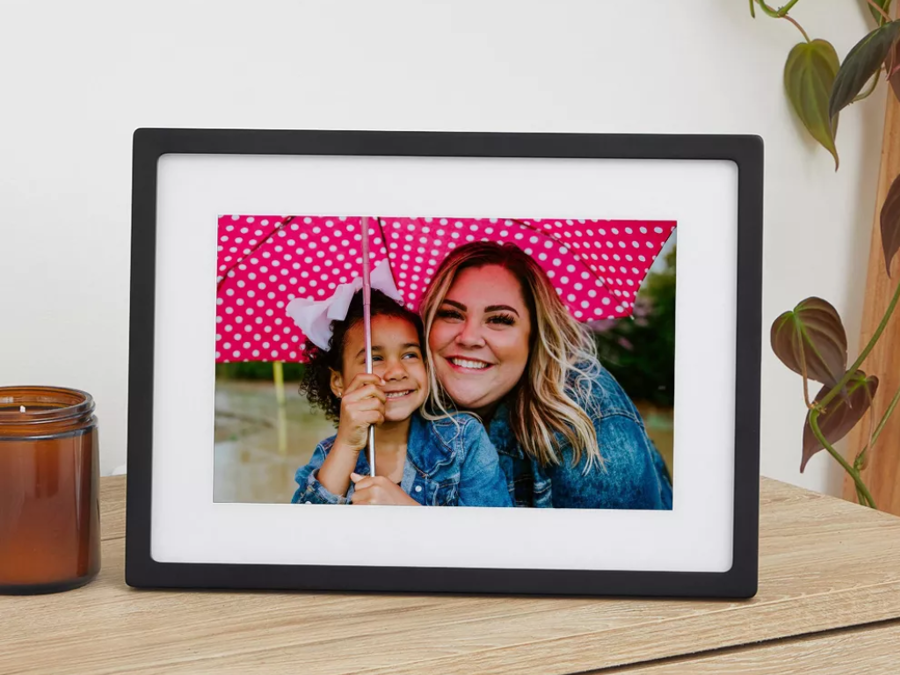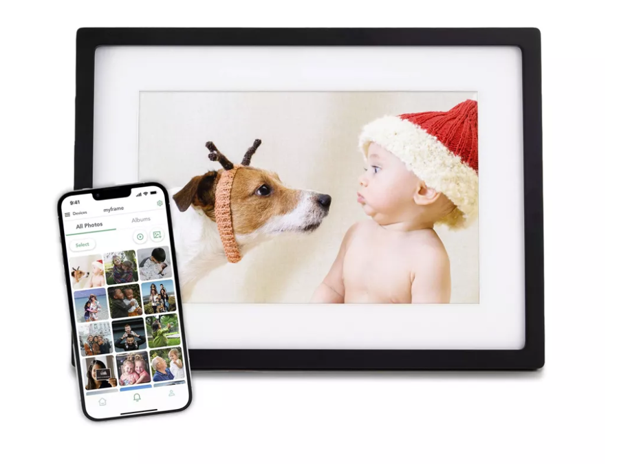 The Skylight 10" Photo Frame is a Wi-Fi-enabled, 10-inch color touchscreen digital picture frame that lets users share photos from anywhere via email. Key features include a 1280x800 resolution display, cloud-based storage, a simple setup process, and the ability to receive photos even from non-tech-savvy family members. It also supports videos and has features like "Gift Mode" for preloading photos and an offline mode for viewing existing ones. Donated by Astound