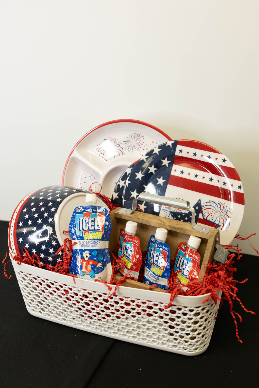 Celebrate in style with this festive red, white, and blue picnic collection — perfect for summer gatherings, holidays, or family fun. Includes: • Serveware: Serving bowl, relish platter, 10 plates (all red, white, and blue with star theme) • Drinks & Accessories: Four Icee slush drinks, picnic caddy A cheerful and ready-to-go set for patriotic picnics and outdoor entertaining!