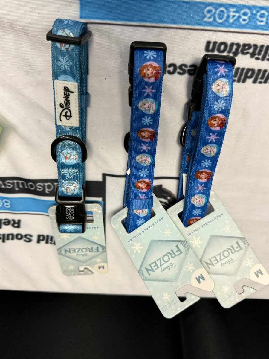 This exciting Small/Medium Dog Lot is perfect for your furry friends who love to play and look festive! Included in this lot is a durable rubber fetch toy, ideal for hours of fun and exercise. Your dog will also stay stylish during the holiday season with a cozy Medium Holiday Sweater, as well as two adorable Medium Holiday shirts that are perfect for festive gatherings. Additionally, we've included three charming Disney Frozen Medium collars that will make your pup stand out. To top it off, there are two small holiday shirts for your smaller companions. This lot is a great way to ensure your dogs are ready for the holidays in both comfort and style!