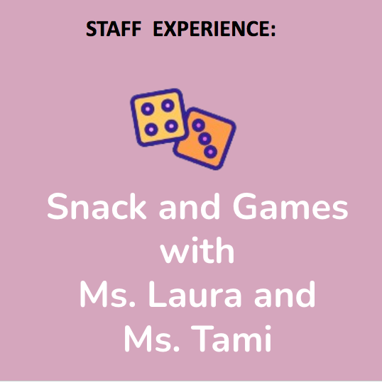 Ms. Laura and Ms. Tami will provide board or card games and snacks for a winner and one friend on a Tuesday at Lunchtime. Date TBD