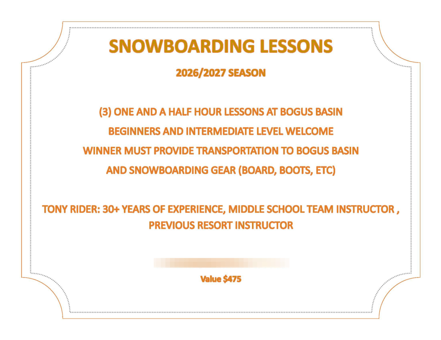 Three (3) one and a half hour snowboarding lessons at Bogus Basin. Winner to supply own transportation and gear.