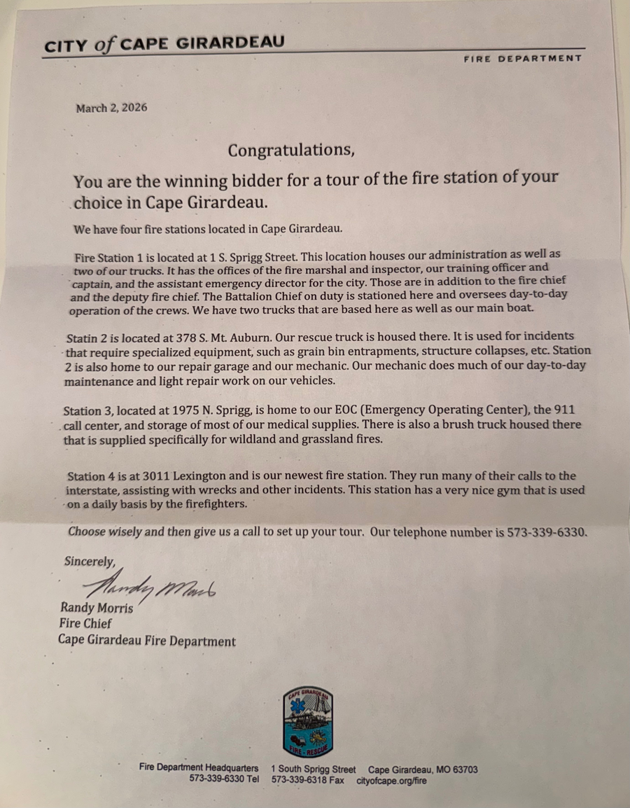 Experience the thrill of the firehouse with our exclusive Cape Firehouse Tour! The lucky winner will have the unique opportunity to explore one of the renowned firehouses in Cape Girardeau. This behind-the-scenes tour will not only provide a glimpse into the daily life of our brave firefighters but also includes a special package featuring a stylish fire hat and an adorable stuffed fire pup to take home. Don’t miss out on this exciting chance to sound the sirens and celebrate the heroic work of our local fire department!