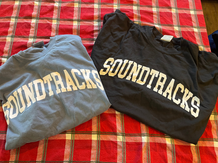 $25.00 Gift card to Soundtracks in Beverly. Two T-Shirts, Blue is XL and Black is XXL.